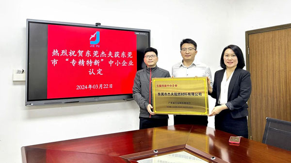 了解更多3月22日,東莞市“專精特新”企業聯合會一行來東莞杰夫阻燃材料有限公司開展“企業授牌及走訪調研”并舉行授牌儀式,東莞杰夫總經辦主任李康、財務經理封東弟參加授牌儀式,并與專精特新企業聯合會就政策支持、開展市場拓展、產業鏈上下游對接合作,提供技術咨詢及產學研合作,搭建融資橋梁解決融資難題展開了深入的交流。