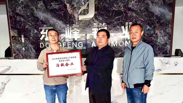 11月6日,黔南州科學技術局何書杰副局長、科技規劃和創新發展科科長陳賓以及獨山縣發展和改革局科技綜合科負責人羅紅一行來到貴州東峰銻業股份有限公司,為東峰銻業頒發了“2022年度貴州省規上工業企業研發投入增長活躍企業”榮譽獎牌,充分肯定了東峰銻業在科技創新和研發投入方面所開展的工作。
