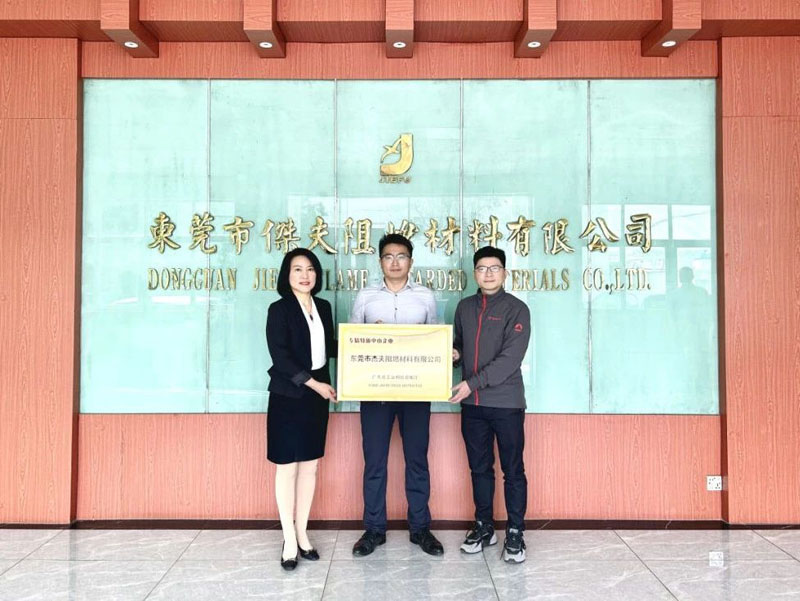 3月22日,東莞市“專精特新”企業聯合會一行來東莞杰夫阻燃材料有限公司開展“企業授牌及走訪調研”并舉行授牌儀式,東莞杰夫總經辦主任李康、財務經理封東弟參加授牌儀式,并與專精特新企業聯合會就政策支持、開展市場拓展、產業鏈上下游對接合作,提供技術咨詢及產學研合作,搭建融資橋梁解決融資難題展開了深入的交流。
